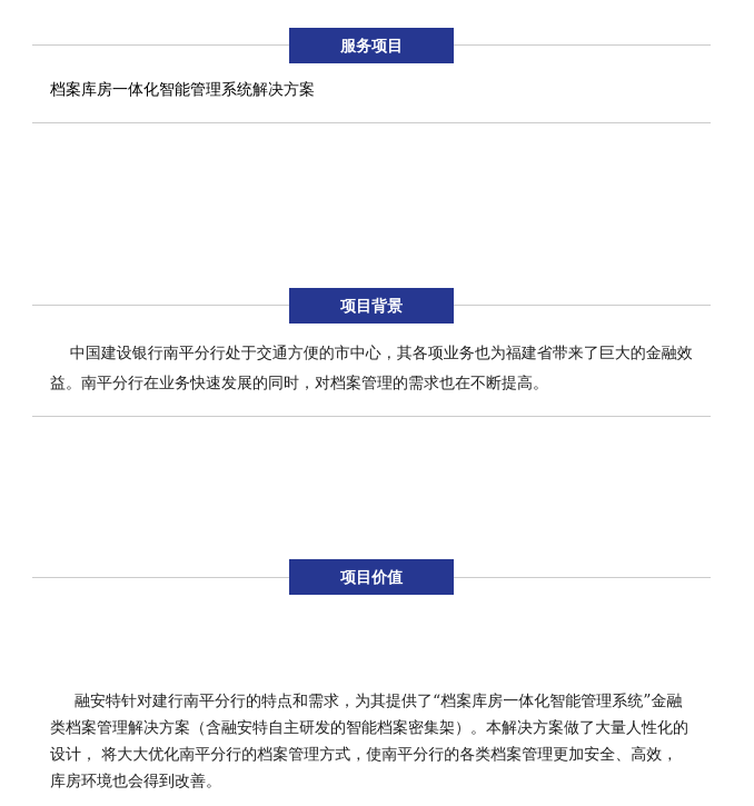 中國建設(shè)銀行南平分行處于交通方便的市中心,其各項(xiàng)業(yè)務(wù)也為福建省帶來了巨大的金融效益。南平分行在業(yè)務(wù)快速發(fā)展的同時(shí),對檔案管理的需求也在不斷提高。及尚針對建行南平分行的特點(diǎn)和需求,為其提供了“檔案庫房一體化智能管理系統(tǒng)”。